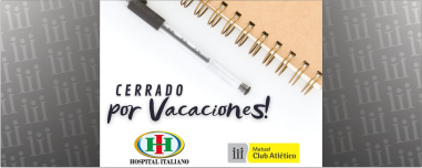 Estimados afiliados: Informamos que la oficina del Hospital Italiano presente en Casa Central de nuestra Mutual, permanecerá cerrada por periodo vacacional desde el 24 de enero al 07 de febrero.